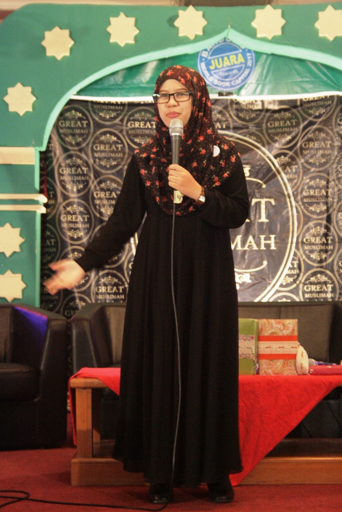 syaamilquran.com – Inspirasi Great Muslimah di Bandung Islamic Book Fair 2014 – Kehadiran komunitas Great Muslimah sebagai pengisi acara di Bandung Islamic Book Fair 2014, pada 7 Mei lalu, membawa aura motivasi bagi audience yang hadir. Febrianti Almeera, founder Great Muslimah, dengan lugas menyampaikan kalimat-kalimat motivasi, yang dirangkumnya dalam tiga fokus yang menjadi landasan komunitas Great Muslimah, yaitu focus to Allah, focus to me dan focus to others.