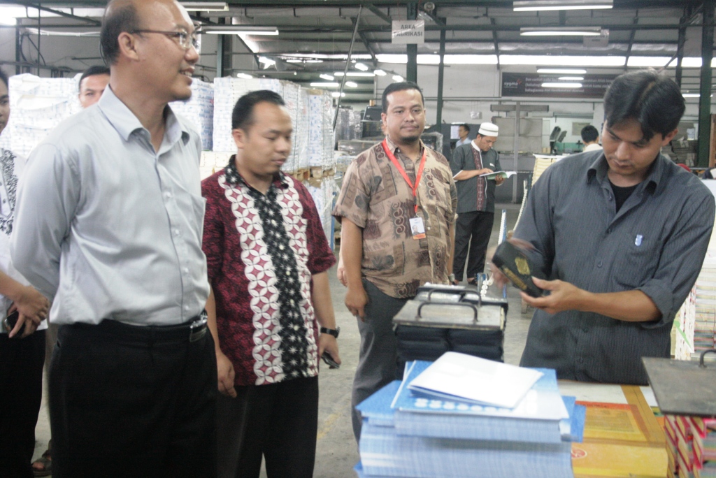 “Alhamdulillah, dengan kunjungan kesini, kami mengetahui proses percetakan Quran Syaamil, yang selama ini hanya kami tahu jadinya. Proses pencetakan Syaamil ini adalah terobosan baru untuk produksi Al Quran, karena dibuat beda menurut usia, sehingga ada untuk orang dewasa, juga anak-anak. Selama ini yang kita ketahui, baik untuk anak-anak maupun orang tua, bentuknya qurannya sama,” ujar Muhammad Hardi As’ari, pimpinan Pondok Pesantren Daarul Ulum, Majalengka.