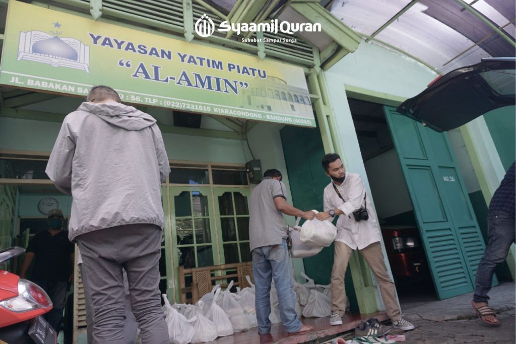 Tim Syaamil Quran menyerahkan bantuan ini secara langsung dengan mendatangi Yayasan Yatim Piatu Al-Amin, di lokasi yang tidak jauh dari Kantor Syaamil Quran.